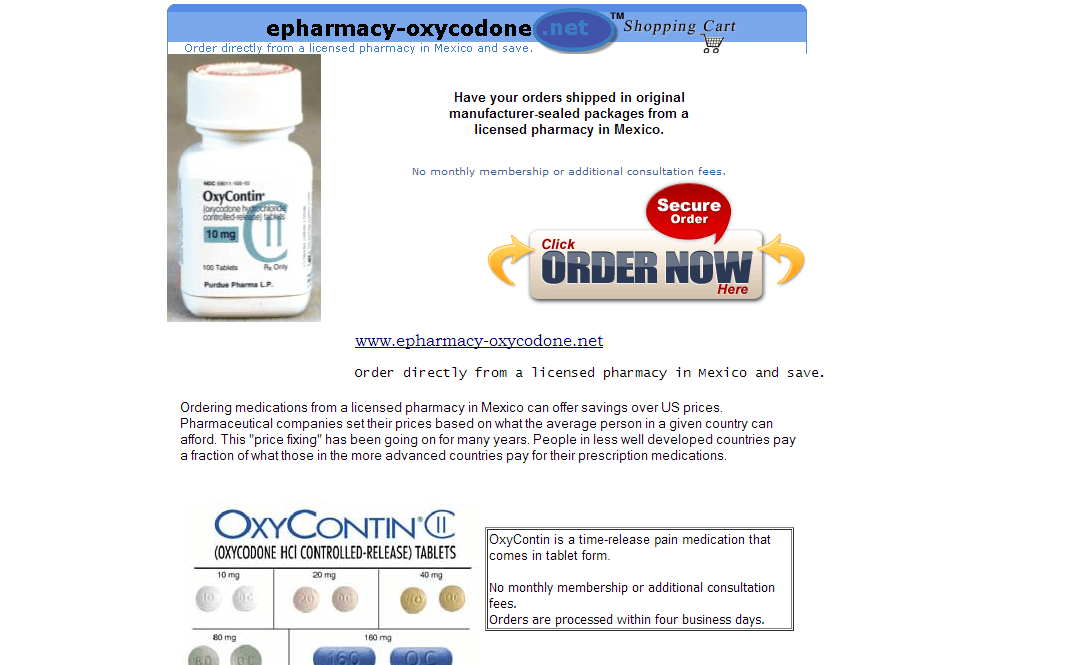 Epharmacy-oxycodone.net offers free shipping to all orders over $99. The company as well acknowledges payments that have been done via PayPal, MasterCard, Visa as well as American Express. Express Courier International is Epharmacy-oxycodone.net favorite shipping supplier. Germany in addition to Netherlands orders are incapable of being placed as the neighboring customs have not established several of Epharmacy-oxycodone.net parcels. Epharmacy-oxycodone.net safely stores cliental data on their sites. Epharmacy-oxycodone.net utilizes this data to advance their services and potentials in operating their business for the customer. Epharmacy-oxycodone.net does not vend, offer, or permit their information to be scrutinized by any other individuals other than those working for the company. The clients enter all data gathered and stored on Epharmacy-oxycodone.net clients’ guide. Registered clients can analyze and modify this data by logging in through their username as well as password by accessing their account data. The data comprises client profiles, addresses, in addition to previous orders made.