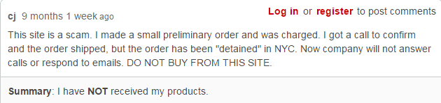 The customer explains that he made a small order, paid for his meds and the order was then “detained in NYC”. Even worse than that, is the fact that the company did not answer to his calls. Cj concludes his review by advising (in caps lock) future consumers to “not buy from this site”.
